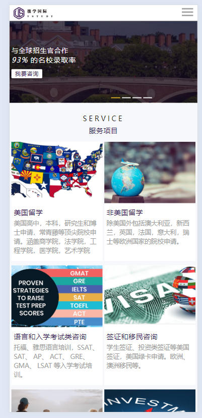 留学网站类,响应式技术 - 案例展示 - 洛阳龙犇网络科技有限责任公司