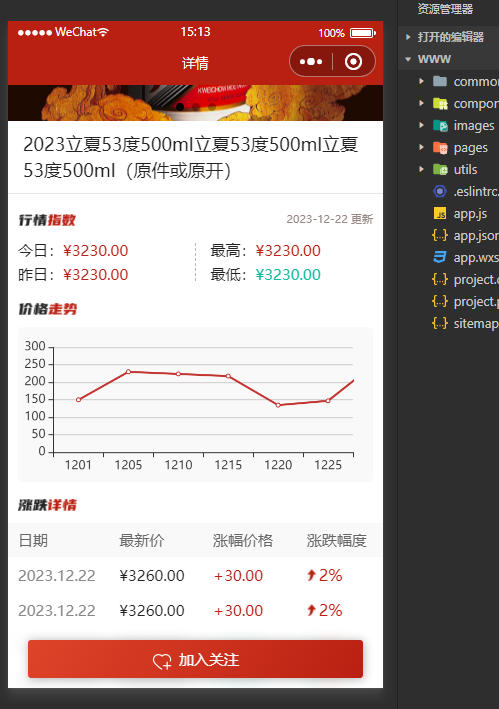 白酒价格微信小程序前端