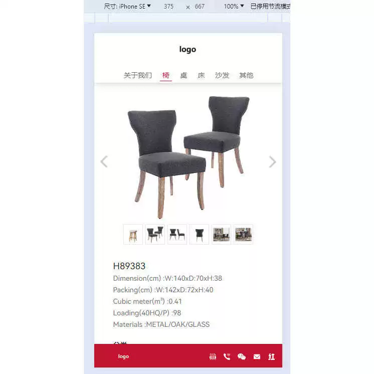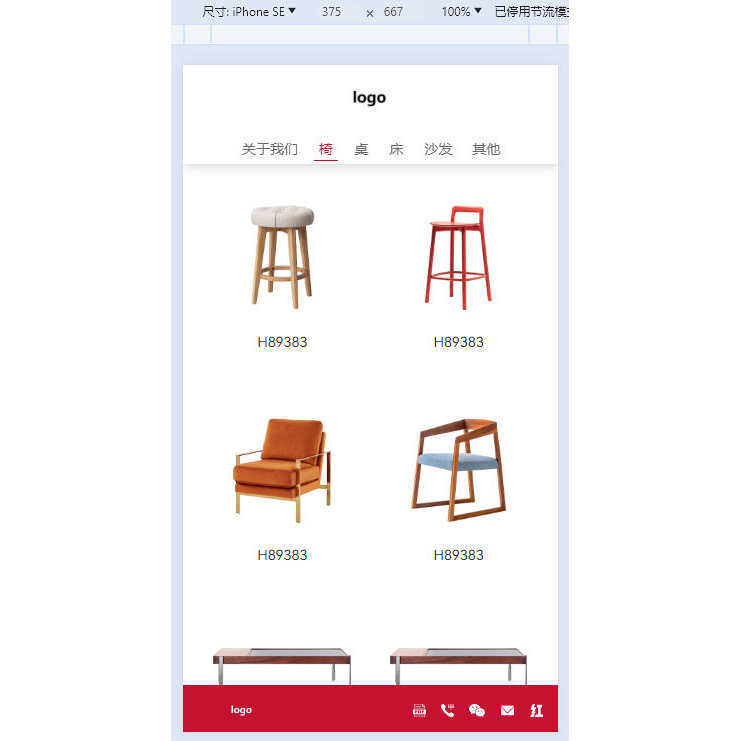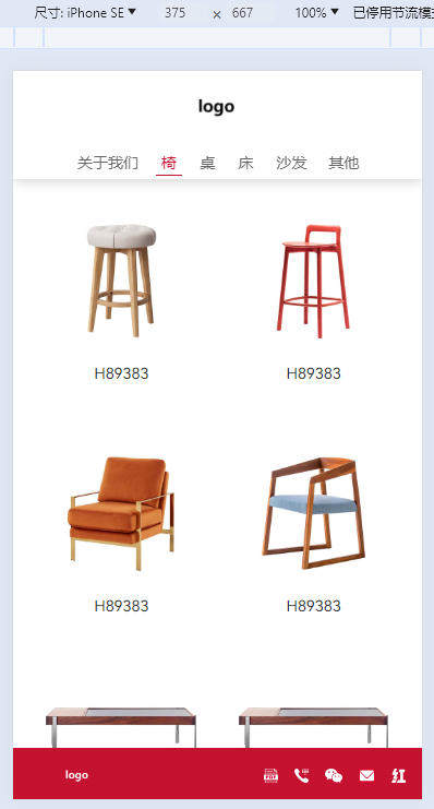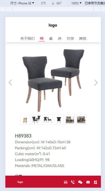 10、手机端时,产品分类“椅子”的产品列表浏览效果