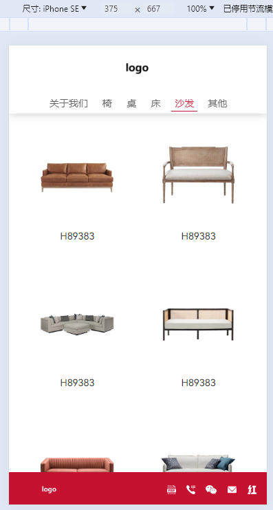 9、手机端时,产品分类“沙发”的产品列表浏览效果