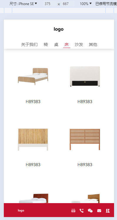 8、手机端时,产品分类“床”的产品列表浏览效果