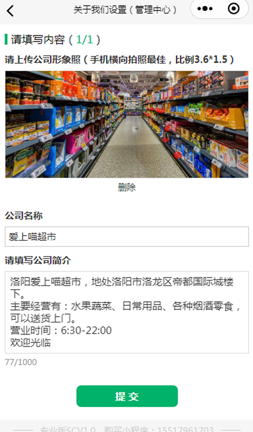 此商品是“微信小程序”,主要用来展示企业信息+商城购物功能,标价为年费(500元/年)。
